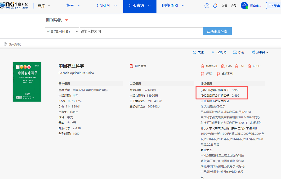 (3)核心期刊更新具有滞后性,所以到更新年份或月份时,检索结果会有误差,但是都以最终核心期刊更新情况为准。比如,2020年上半年检索文章时,《河南农业大学学报》北大中文核心期刊更新到2017年版,2020年底北大中文核心期刊2020年版才更新,2020年这中间的检索结果就会有误差。