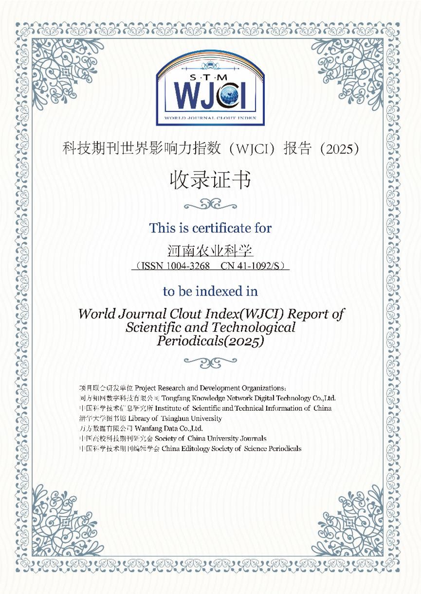 《WJCI报告》是由中国科学技术信息研究所、《中国学术期刊(光盘版)》电子杂志社有限公司、清华大学图书馆、万方数据有限公司、中国高校科技期刊研究会、中国科学技术期刊编辑学会联合研制的期刊评价报告,是一份体现世界期刊同台竞技结果的期刊评价报告,入选期刊均被认为是具有地区代表性和学科代表性的优秀期刊。《WJCI报告(2025)》经过严格评议,收录了全球15274种科技期刊,其中中国期刊1906种。《河南农业科学》的连续入选标志着国际影响力和学术影响力的持续提升。